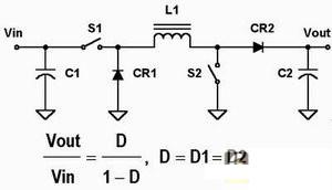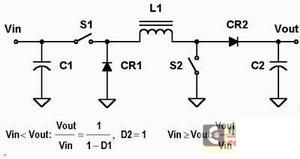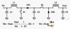 圖1a的電路盡管是四個電路中最復雜的,卻有幾個優點。它的輸入和輸出電流被電感平滑處理,減小了輸入和輸出端的紋波電流以及對電容C1和C3的電流應力。但是這一方案也有缺點,電容C2的電流不管是當Vin小于Vout時來自CR1還是當Vin大于Vout來自S2,它都會有中斷,而且它需要兩個電感。