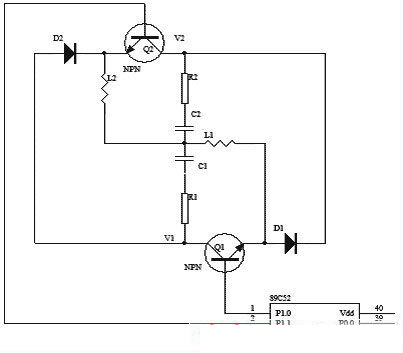 本實驗中,選用兩個小功率NPN管C1815(Q1、Q2)來替代開關管,用89C51芯片的P1.0和P1.1腳控制Q1、Q2的開關。同時,蓄電池的端電壓V1和V2由差動放大電路采集,經A/D轉換送到CPU。在整個過程中,電壓每20ms采樣一次,每隔1s上傳上位機并保存并自動繪制曲線。圖5為試驗電路圖。