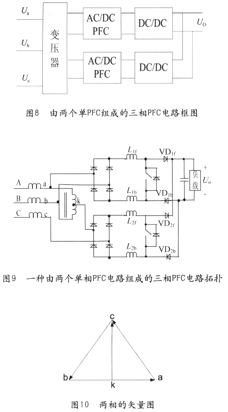 下面將對由單相PFC實現(xiàn)三相PFC的幾種方法分別進行介紹。