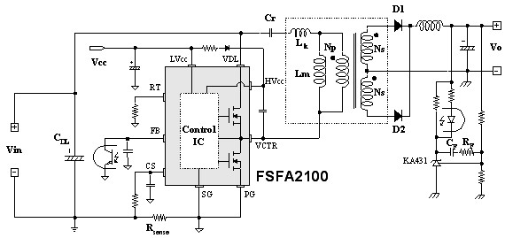 圖3:基于FSFA2100的非對稱半橋轉換器