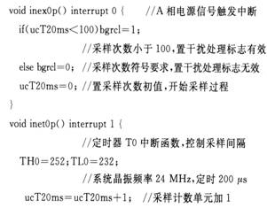 系統(tǒng)主程序通過(guò)對(duì)bgrc1進(jìn)行判斷,如果有效進(jìn)行干擾軟件處理,無(wú)效則采用測(cè)量過(guò)程沒(méi)有受到電源的高頻干擾,進(jìn)行正常的計(jì)算處理。