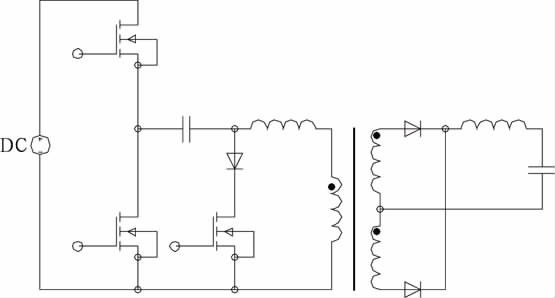 文獻[7]提出不對稱脈沖PWM 控制,其下管下降沿與上管的前沿互補,上管可實現ZVS.只要設計的占空比較小,無需其它措施即使工作在較高頻率下開關損耗也很小。變壓器直流偏磁,除占空比端點外,偏磁電流小于不對稱半橋。寬范圍適用性優于傳統的不對稱半橋。低壓大電流的應用場合有一定的優勢。
