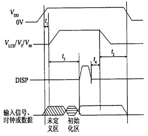 所有液晶顯示器對于上電、下電時序都有嚴格要求。如果上電、下電時序不符合要求,則不能正常顯示,常常會出現亂碼、鎖存、殘留顯示等現象。以日本日立公司驅動芯片HT66130/HT66137驅動320×240液晶顯示屏為例,對上電、下電時序的要求如圖3所示,一般液晶顯示驅動芯片要求也大致如此。