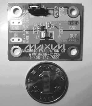 以Maxim公司提供的MAX8640Y/Z為例,該系列器件采用SC70封裝,工作在4MHz/2MHz的開關頻率下,能夠在500mA 的輸出電流下保證高效率。該器件適合用于為微處理器或DSP內核供電,或者用于I/O供電。所采用的SC70封裝僅為2mm×2.1mm,是業界尺寸最小的解決方案。
