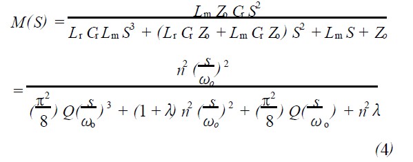 從圖3 中可以看到,在整個頻率圍內,既有降壓的工作區域(M < 1) ,也有升壓的工作區域( M >1) ,此LLC 諧振有著較大的應用范圍。 在輕負載時,工作頻率逐漸升高, 工作在降壓區域內; 而在重負載時, 工作頻率逐漸降低, 工作在升壓區域內。 由圖3 可知, 串聯諧振的工作區域應該為f s / f r > 1 ,才能工作在ZVS 的狀態。 在不同負載下,為獲得ZVS 的工作條件, 只要使之工作在f s / f r > 1的右側即可。 而LLC 諧振不僅僅局限于f s / f r > 1 的區域, 在某些負載下可以工作在f s / f r < 1區域。 同樣可以獲得零電壓轉換的工作狀況。 并且與串聯諧振相比,在不同負載時的頻率變化范圍更小。