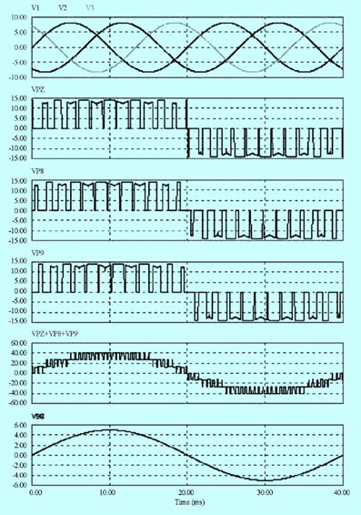 圖9 單相矩陣級聯(lián)的仿真波形