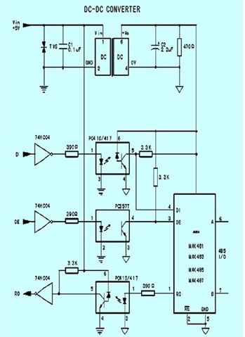 - rs-485采用DC/DC電源模塊與光耦隔離