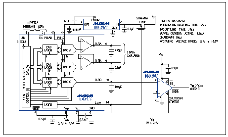 Maxim提供3款單芯片器件可大大簡化設計,這些芯片組合了比較器和DAC.每款器件都非常適合本文應用及其它多種應用?! ?br />