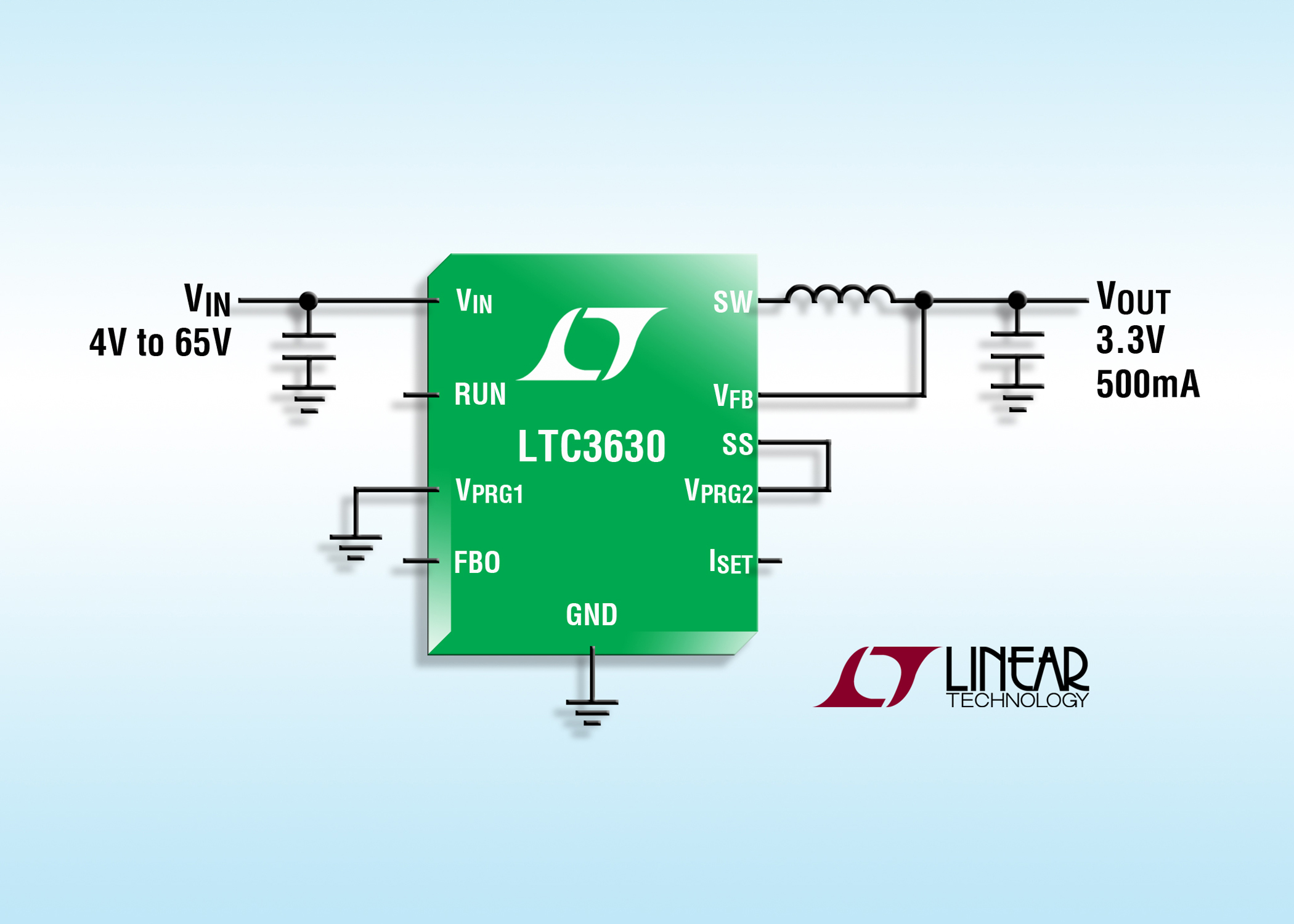 凌力爾特公司 (Linear Technology Corporation) 推出 65V 輸入的同步降壓型轉換器 LTC3630,該器件采用 16 引線耐熱性能增強型 3mm x 5mm DFN 或 MSOP 封裝,提供高達 500mA 的連續輸出電流。其內部的同步整流拓撲提供了高達 90% 的效率,而在突發模式 (Burst Mode®) 工作時僅需要 12µA 靜態電流 (無負載情況下),從而最大限度地延長了電池運行時間。LTC3630 在 4V 至 65V 的輸入電壓范圍內工作,非常適用于多種應用,包括汽車、工業、醫療和航空電子。