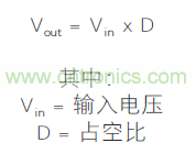 占空比是指開關(guān)導(dǎo)通時間(活動時間)與變換頻率的整個期間 T 之間的比率。 然而,上述等式僅在設(shè)備不產(chǎn)生損耗的理想情況下才成立。 真實情況比較復(fù)雜,實際性能不僅受損耗的影響,而且還受溫度和時間變化的影響。