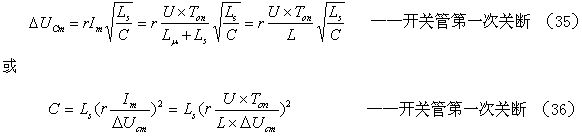 的值可根據(41)式求得。在使用(48)和(49)式之前,還需要先利用(33)和(34)式或(35)和(36)式計算出電容器C的容量,以及根據開關管的最大耐壓BVm定義好電容器C吸收尖峰脈沖電壓增量