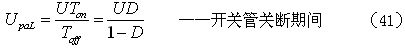 (41)式中,U為電源輸入電壓,Ton為電源開關管的導通時間,Toff為電源開關管的關斷時間,D為占空比。而
