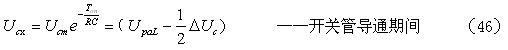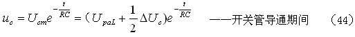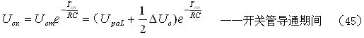 如果考慮電阻R對電容器C充電時的分流作用,以及開關管由導通到完全關斷期間漏極電流(逐步減小)對電容器C充電時的分流作用,則(33)和(34)式可以改寫為: