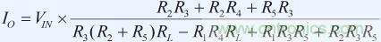 在公式1中,負(fù)載電阻影響輸出電流,但如果我們設(shè)置R1 = R3和R2 + R5 = R4, 則方程簡化為: