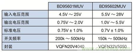 表1:BD95601MUV(1ch)、BD95602MUV(2ch)的規(guī)格概要