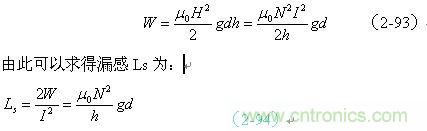 如果我們拿(2-94)式與(2-62)式或(2-89)式進(jìn)行對(duì)比,可以看出,線圈漏感與線圈的電感是沒有本質(zhì)區(qū)別的,只是磁路和磁感應(yīng)強(qiáng)度以及介質(zhì)導(dǎo)磁率等參數(shù)需要根據(jù)實(shí)際情況來決定。