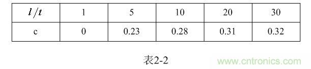 【說明】上式是用來計(jì)算多層線圈繞組、截面為圓形的空心線圈的電感計(jì)算公式。長岡系數(shù)k可查閱表2-1,系數(shù)c可查閱表2-2。當(dāng)線圈內(nèi)部有鐵芯時,有鐵芯線圈的電感是空心線圈電感的
