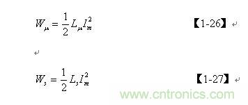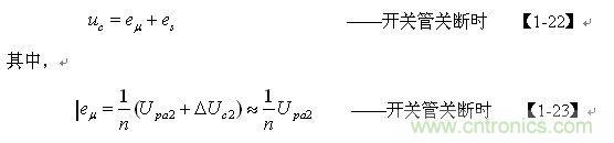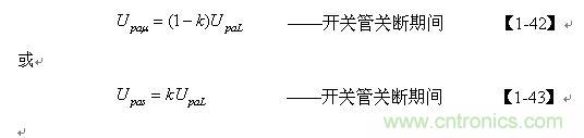 【1-42】和【1-43】式中, k=Ls/L為漏感 Ls與開關(guān)變壓器初級線圈的電感L的比值。