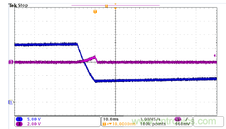 圖5、圖6和圖7是比較性實(shí)驗(yàn)。CH1是VDD電壓,CH3是輸出電壓。