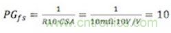 LM25116評估板的功率級跨導由10mΩ的電流檢測電阻(R11)和電流檢測放大器增益(10)設定,并滿足10A的電流極限。最終的功率級跨導等于: