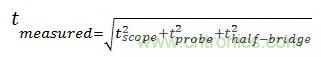 測得的半橋上升時間包括示波器的上升時間和探頭的上升時間,為: