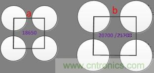 由于21700 /20700 /20650電池容量的增加在實際PACK設計中需要考慮單支電池安全失控后對周圍電池的影響及問題的可控性,所以需要重新計算電池之間的“安全設計距離”,這個距離肯定要大于18650的(b 》 a),這進一步增加了體積。