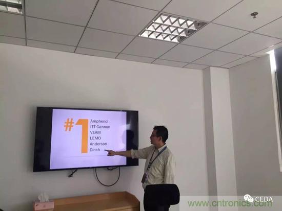 圖2:徐總介紹倍捷連接器授權(quán)代理裝配和銷售的主要產(chǎn)品線