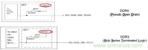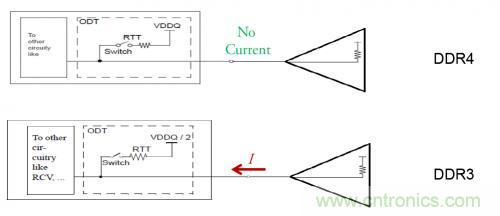 驅動DRAM工業發展的一個主要市場需求是對內存器件的低功耗要求。介于這個原因,DDR4引入了一個新的IO驅動標準,成為PSOD(Pseudo Open Drain)。在PSOD里,接收端將信號端接到軌電壓(VDD),而不是軌電壓的一半(VDD/2)。