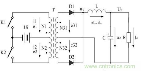 由于它的兩個控制開關K1和K2輪流交替工作,其輸出電壓波形非常對稱,并且開關電源在整個工作周期之內都向負載提供功率輸出,其輸出電流瞬間響應速度很高,并且它是所有開關電源中電壓利用率最高的開關電源,它在輸入電壓很低的情況下,仍能維持很大的功率輸出,所以被廣泛應用于低輸入電壓的DC/AC逆變器,或DC/DC轉換器電路中。