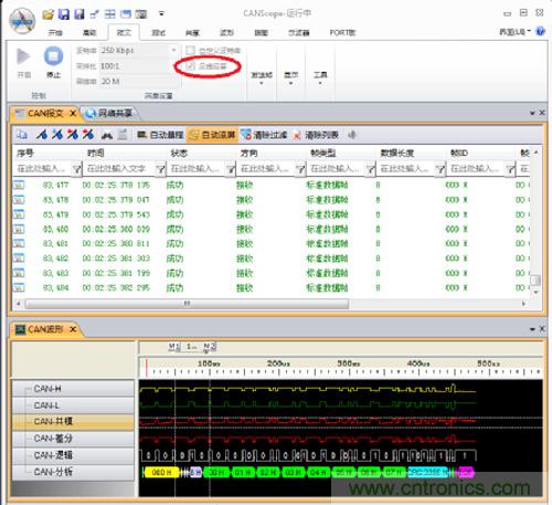 我們勾選上總線應答,再次開始實驗(此時總線中相當于有3個節點)。這時如圖8所示,總線數據收發正常。
