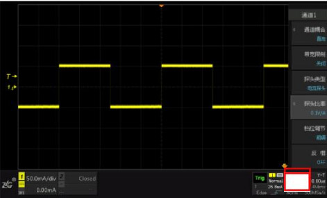 方波響應(yīng)主要是用來簡易測試電流探頭幅頻響應(yīng)特性的測試方法。電流探頭能夠完整的重現(xiàn)方波波形,不出現(xiàn)畸變,說明探頭的幅頻響應(yīng)平坦,是良好的。