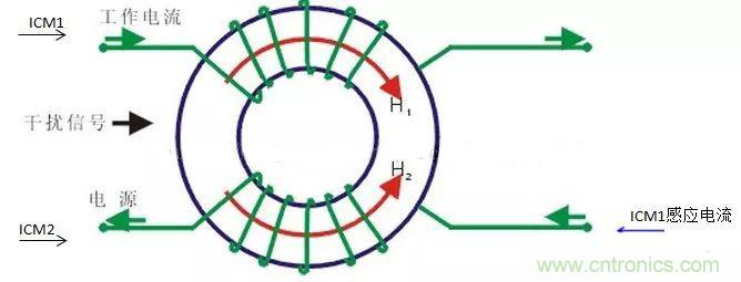 當電路中的正常電流通過時,電流在同相位繞制的電感線圈中產(chǎn)生反向的磁場而相互抵消,此時正常信號電流主要受線圈電阻的影響(和少量因漏感造成的阻尼);當共模電流流過線圈時,由于共模電流的同向性,會在線圈類產(chǎn)生同向的磁場而增大線圈的阻抗,使線圈表現(xiàn)為高阻抗,產(chǎn)生較強的阻尼效果,以此衰減共模電流達到濾波的目的。