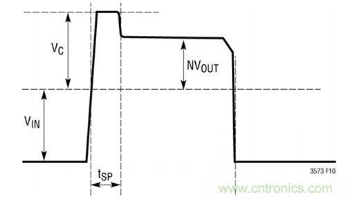 LT3748 通過檢測變壓器主端上的輸出電壓免除了增設一個光耦合器、基準電壓和光學驅動器的需要。如圖2 所示,輸出電壓可在功率晶體管關斷期間的主端開關節點波形上準確地測量,其中的 N 為變壓器的匝數比,VIN 為輸入電壓,而 VC 為最大箝位電壓。LT3748 通過選擇 RFB 和 RREF 以及變壓器的匝數比來設定輸出電壓。由于始終在二極管電流零交叉點上進行反射輸出電壓的采樣,因此負載調節性能在邊界模式操作中得到了大幅度的改善。LT3748 通常可提供 ±3% 的負載調節。