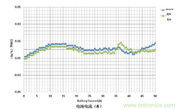 許多因素都會(huì)影響系統(tǒng)精度,包括溫度漂移、電壓漂移和偏移電壓。電池測(cè)試儀參考設(shè)計(jì)使用三點(diǎn)校準(zhǔn)來計(jì)算不同的影響來源或任何錯(cuò)誤。圖2顯示了在寬電流范圍內(nèi)實(shí)現(xiàn)的滿量程精度。該系統(tǒng)在電池充電時(shí)以降壓模式運(yùn)行,放電時(shí)以升壓模式運(yùn)行。