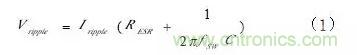 從圖中可以看到,電感的電流波形等價(jià)于在直流I(DC)上疊加一個(gè)I(P-P)值為ΔI的交流。因而,I(DC)成為輸出電流I(O),主要消耗在負(fù)載上;交流ΔI則消耗在負(fù)載電容的ESR(Equation Serial Resistance)上,成為輸出紋波V(ripple)。