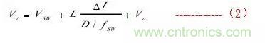 其中:iV為輸入電壓,SWV為開關(guān)管電壓,oV為輸出電壓,SWf為開關(guān)頻率,D為占空比。