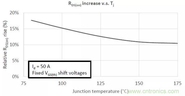 通常來說,15%的Rds(on)增量是最壞的情況。更大的增量只可能出現(xiàn)在高電流和低結溫的工況中,這在實際應用中十分罕見。