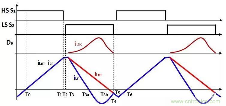 因此,次級(jí)整流二極管的電流iDR為iLr和iLm的電流差值:
