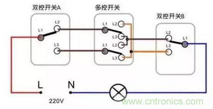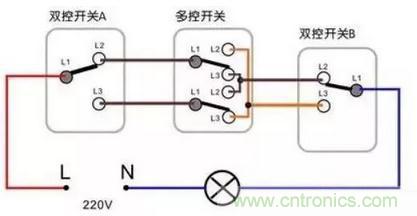 三控開關原理接線示意圖