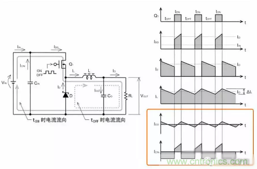?降壓轉換器中,瞬間輸入電流的最大值與輸出電流相同。