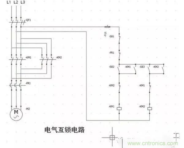 正反轉的控制回路只是在KM1的正轉回路上增加了一個KM2的常閉輔助觸點,同時也在KM2的反轉回路上增加了一個KM1的常閉輔助觸點,這就是所謂的互鎖電路