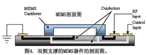 RF-MEMS器件有許多形狀和形式。有些像懸臂橋的微型版本,而另一些則可能模仿蹦床(圖4)。它們的幾何尺寸通常為數十到數百微米。這樣的尺寸使這些器件非常有吸引力,因為它們使得在1 mm2或更小的空間內實現復雜的電路解決方案成為可能。此外,可以改變MEMS來實現各種不同的可調微應用,比如濾波器和放大器。