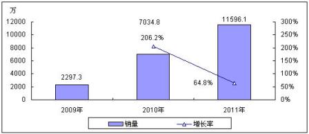 圖2 2009-2011年中國3G業務收入規模與增長預測