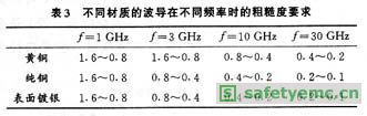 波導(dǎo)表面粗糙度越低,加工難度越大,制造成本也越高。為了降低成本、提高經(jīng)濟(jì)效益,在不同頻段,控制波導(dǎo)管表面粗糙度的要求是不同的。頻率越高,波長(zhǎng)越小,粗糙度值要求也越低。表3為實(shí)際工作中總結(jié)出的銅、黃銅、鍍銀波導(dǎo)在不同頻率時(shí)的粗糙度要求,可作為設(shè)計(jì)時(shí)的依據(jù)。