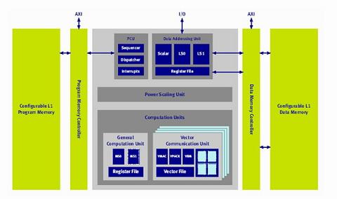 CEVA-XC架構基于整合在CEVA-X處理器中的1、2或4個矢量通信單元(VectorCommunicationsUnit)而構建。每個向量單元是一個256位SIMD引擎,采用3路VLIW和大量16MAC、算法、邏輯及位移單元。CEVA-XC指令集可以滿足4G無線調制解調器的要求,包括矩陣處理、MIMO檢測器、復雜濾波、數(shù)據(jù)交換和比特流處理。