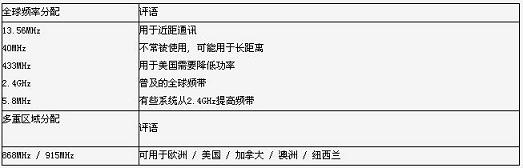 SRD無線系統的設計者在選擇無線通信頻率上需要格外小心。在大多數的情況下,此選擇被侷限于頻譜中容許免執照使用的那些部份,而前提是必須符合使用上的特定規格與條件。表一所列為全球可使用的頻帶。