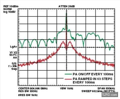 工程人員也需要了解到歐洲法令中,一項加諸在暫態功率上的限制新規格,也就是當發射器在正常運作中開關時,落入臨近頻譜的功率。將此限制加入最新法令中的目的,是要避免頻譜飛散(spectralsplatter)。