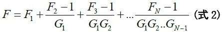 式中,F=總系統噪聲系數,Fn=每個子系統的噪聲系數,Gn=每個子系統的增益(損耗)。