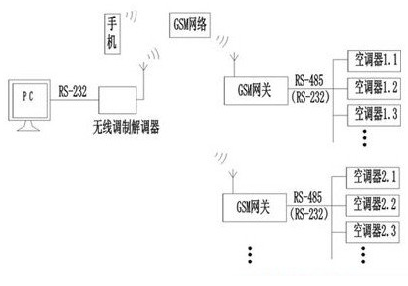 在這些應用中,通過有線網(wǎng)絡(如有線Internet網(wǎng)絡和PSTN網(wǎng)絡)需要專用網(wǎng)線,實現(xiàn)起來不經(jīng)濟也不方便。由于GSM網(wǎng)絡覆蓋范圍廣,用戶無需另外組網(wǎng),且用戶數(shù)量無限制,因此比起傳統(tǒng)的有線集群系統(tǒng)具有無法比擬的優(yōu)勢,加上GSM的SMS功能不受時間、地點的局限,使得利用GSM網(wǎng)絡構筑的網(wǎng)絡家電的應用前景越來越廣。為此,公司于2004年立項并成功開發(fā)出基于GSM網(wǎng)絡的網(wǎng)絡家電 - GSM網(wǎng)絡空調系統(tǒng)。