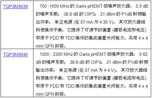 最新TQP3M9039和TQP3M9040目前已投產(chǎn),可提供樣片。